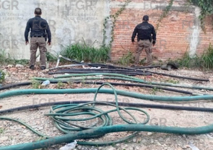 En el primer domicilio, los elementos de la Policía Federal Ministerial (PFM), en coordinación con peritos del Centro Federal Pericial Forense (CFPF), ambos de la Agencia de Investigación Criminal (AIC), aseguraron una cisterna, una motobomba sumergible de succión, un DVR y cinco tramos de manguera de plástico.