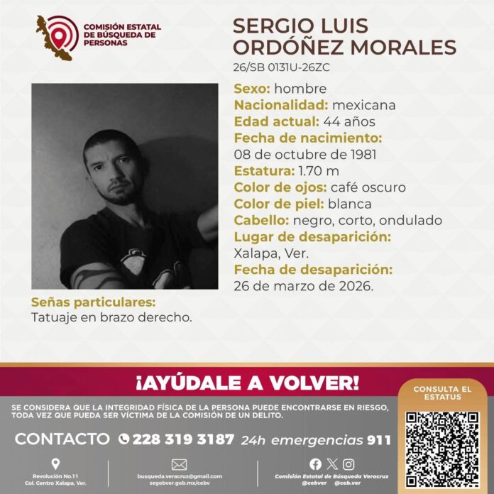 La Comisión Estatal de Búsqueda ha puesto a disposición el número telefónico 228 319 3187 para recibir cualquier dato que ayude a dar con el paradero de Sergio Luis Ordóñez Morales, garantizando el manejo confidencial de la información.