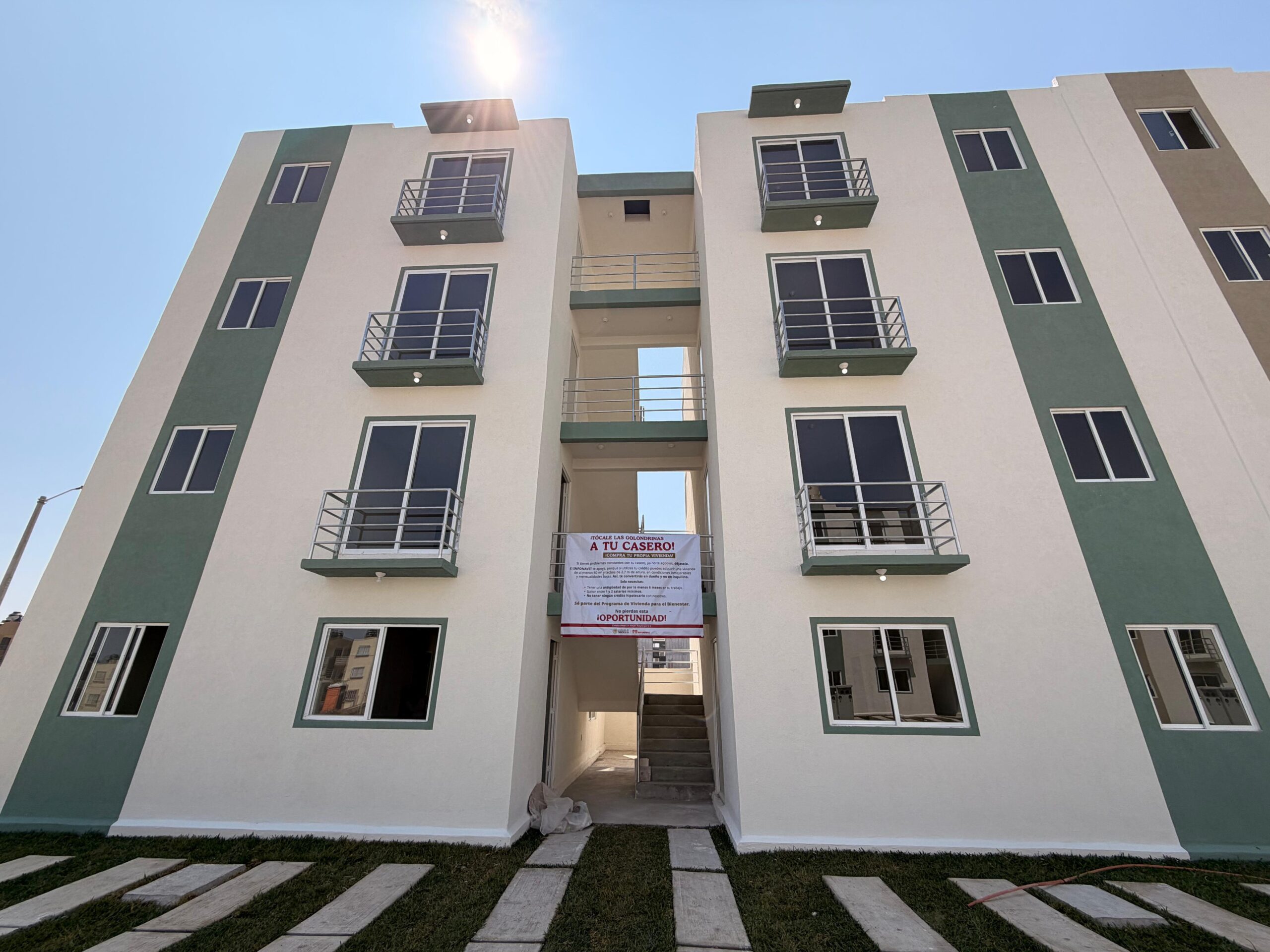• Espacios funcionales y cómodos: viviendas de al menos 60 metros cuadrados y 2.7 de altura, con dos recámaras, cocina, sala-comedor, baño completo y área de servicio.