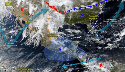 La Comisión Nacional del Agua (Conagua) informó que la persistencia de un canal de baja presión que se extenderá a lo largo del centro del territorio nacional durante este periodo de pronóstico, el ingreso de humedad y los efectos orográficos, además de los efectos de una vaguada en la atmósfera superior que cruzará de oeste a este sobre el centro y noreste del país durante el domingo, propiciarán el desarrollo de nublados y el