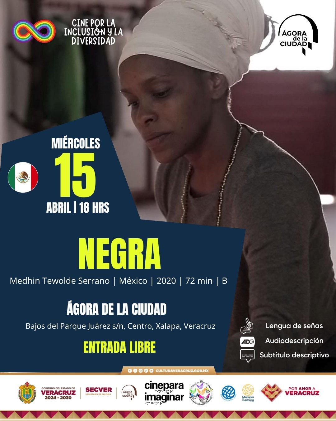 Xalapa, Ver., martes 14 de abril de 2026.- La Secretaría de Cultura de Veracruz, en colaboración con la Red Xalapeña de Cine Clubes y Maraña es Cultura, invita al público en general a la proyección del documental Negra, de la directora Medhin Tewolde.