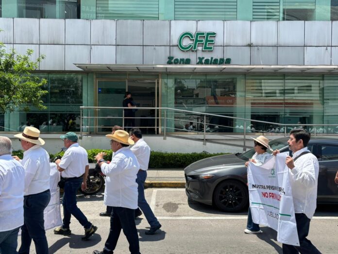 Jubilados de confianza de la Comisión Federal de Electricidad (CFE) y Petróleos Mexicanos (Pemex) se manifestaron en las calles de Xalapa para expresar su rechazo a la reforma al artículo 127 constitucional publicada en el Diario Oficial de la Federación.