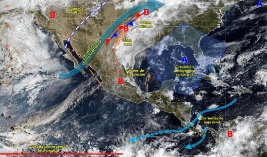 La Comisión Nacional del Agua (Conagua) informó que es posible que entre jueves a tarde del sábado, domine la circulación anticiclónica en la mayor parte del golfo de México. No obstante, un canal de baja presión en el norte y noreste del país, y otro más sobre el suroeste del golfo de México, adicionalmente al flujo de humedad hacia el interior de la región, ocasionarán algunos nublados con posibles lloviznas aisladas por las tardes y noches en el occidente y suroeste tamaulipeco y en zonas altas del Jamapa-Cotaxtla y