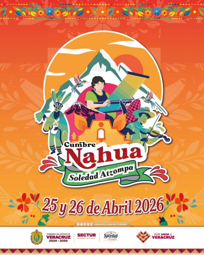 Xalapa, Ver., viernes 17 de abril de 2026.- La Secretaría de Turismo (SECTUR) invita a la Cumbre Nahua 2026, que se realizará los días 25 y 26 de abril en la localidad de Las Porfiadas, municipio de Soledad Atzompa; un encuentro que enaltece la riqueza cultural y las tradiciones de los pueblos originarios de la región.