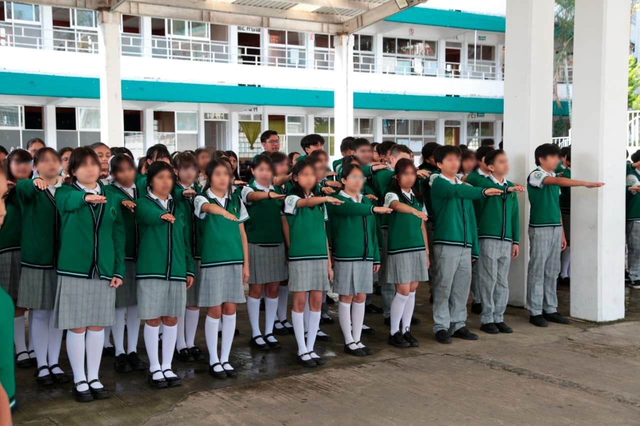 En el marco del Lunes Cívico, efectuado en la Escuela Secundaria General No. 1 Sebastián Lerdo de Tejada, la secretaria de Educación de Veracruz, Claudia Tello Espinosa, destacó la importancia del trabajo colaborativo entre el Gobierno del Estado y la Federación para que la comunidad estudiantil reciba apoyo económico, materiales educativos y uniformes.