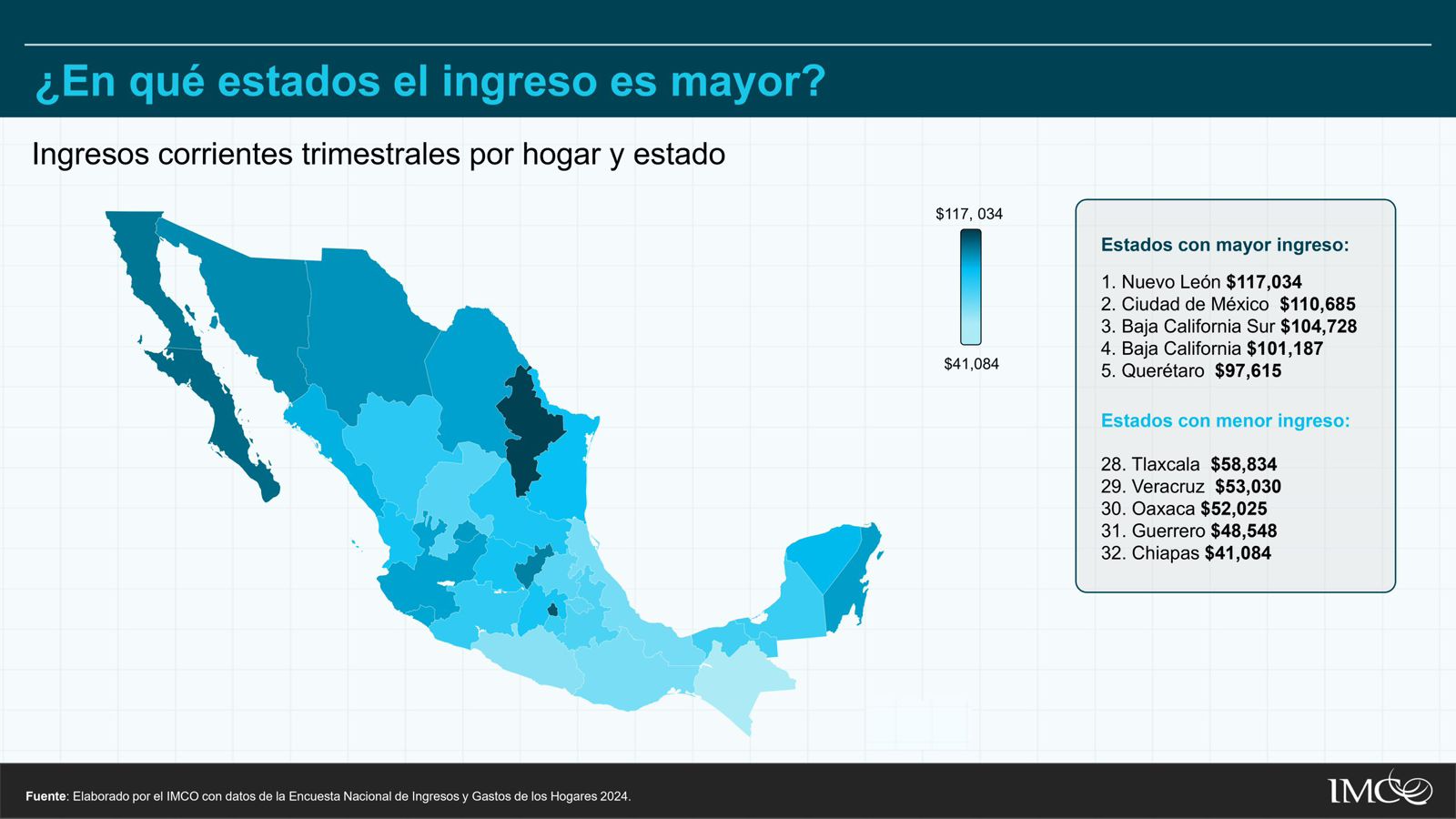 Mientras estados como Nuevo León registran ingresos trimestrales superiores a los 117 mil pesos, las entidades del sur-sureste, incluyendo a Veracruz, se mantienen alejadas de esas cifras.
