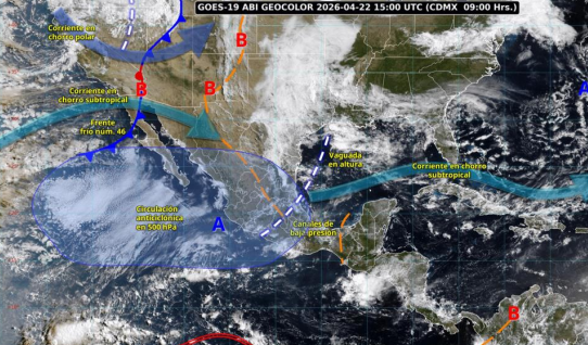 La Comisión Nacional del Agua (Conagua) informó que la presencia de un canal de baja presión sobre el norte, centro y oriente del territorio nacional y sobre el suroeste del golfo de México, junto con el flujo de humedad hacia el interior del país, el calentamiento diurno y el forzamiento orográfico, provocarán, para este período de pronóstico, la presencia de nublados con lloviznas, chubascos (5.1 a 25 mm) y descargas eléctricas aisladas, especialmente en el norte, occidente y sur de Tamaulipas y en zonas montañosas de las