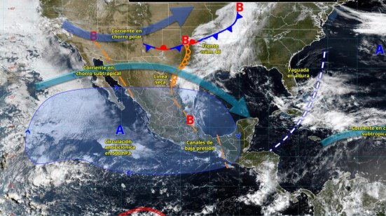 No obstante, la presencia de un canal de baja presión sobre el norte, centro y oriente del territorio nacional, junto con el flujo de humedad hacia el interior del país, el calentamiento diurno y el forzamiento orográfico, provocarán nublados dispersos con probabilidad para lloviznas, chubascos (5.1 a 25 mm) y descargas eléctricas aisladas, especialmente en el noroeste, occidente y suroeste tamaulipeco, así como en zonas montañosas de las cuencas del Actopan, La Antigua, Jamapa-Cotaxtla y Papaloapan. Adicionalmente, las lluvias también pueden estar acompañadas posible caída de granizo en zonas montañosas.