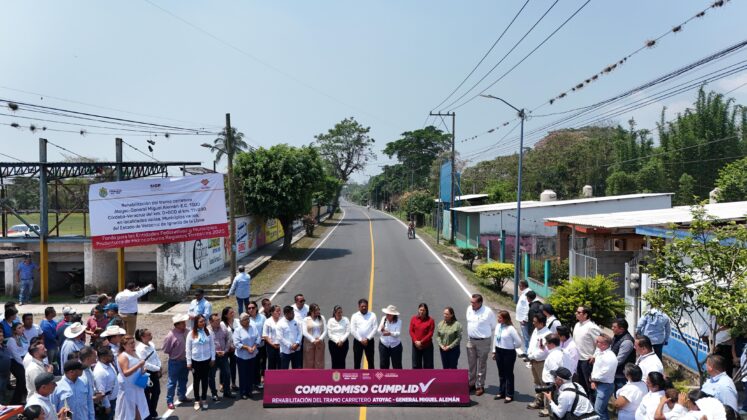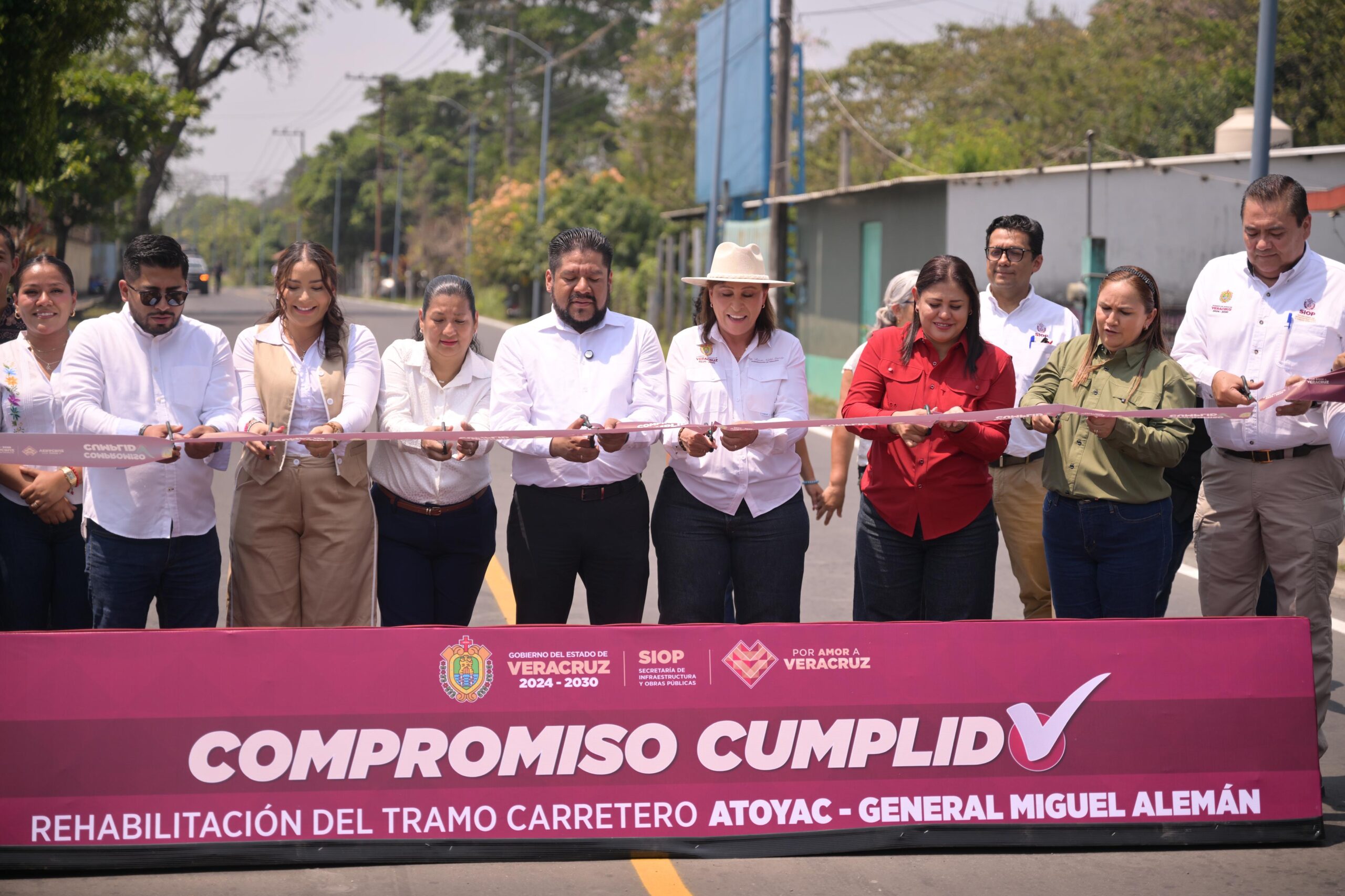 Atoyac, Ver., sábado 25 de abril de 2026.– La gobernadora Rocío Nahle García encabezó la entrega de la rehabilitación del tramo carretero Atoyac – General Miguel Alemán – entronque 150D Córdoba, obra que cumple un compromiso con la población y consolida la presencia de la Cuarta Transformación en la región centro del estado.