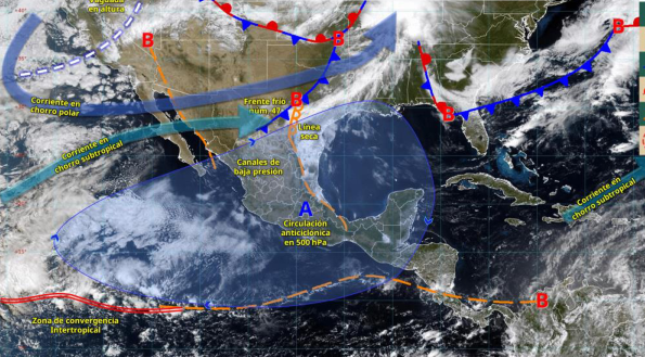 La Comisión Nacional del Agua (Conagua) informó que el dominio de la circulación anticiclónica en el Golfo de México y vertiente oriental del país, favorecerá condiciones de cielo despejado; sin embargo, el ligero ingreso de humedad en interacción con condiciones locales y un canal de baja presión en el noreste del país favorecerán un incremento de nubosidad, especialmente en zonas montañosas y la entidad tamaulipeca, presentándose a partir de la tarde.