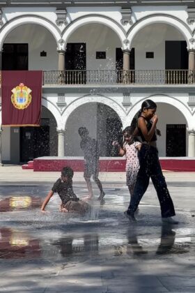 También se intervinieron puntos emblemáticos como la fuente del Zócalo, que llevaba meses fuera de servicio, así como las seis fuentes ubicadas en la Plaza de la República, en donde fue necesario sustituir bombas, rehabilitar mecanismos y eliminar acumulaciones de óxido y suciedad, garantizando un trabajo continuo y adecuado.